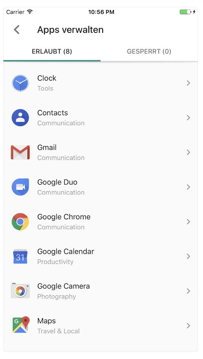 Nachdem sich die Eltern, über den entsprechenden App Store die App heruntergeladen haben, kann es auch direkt losgehen. Nachdem Du ein paar Angaben gemacht hast, kannst Du ein eigenes Konto für dein Kind anlegen und Online-Zeiten, Apps und Anwendungen über eine Art Control-Desk verwalten. Natürlich geht es der Anwendung vornehmlich um Apps aus dem Hause Google.